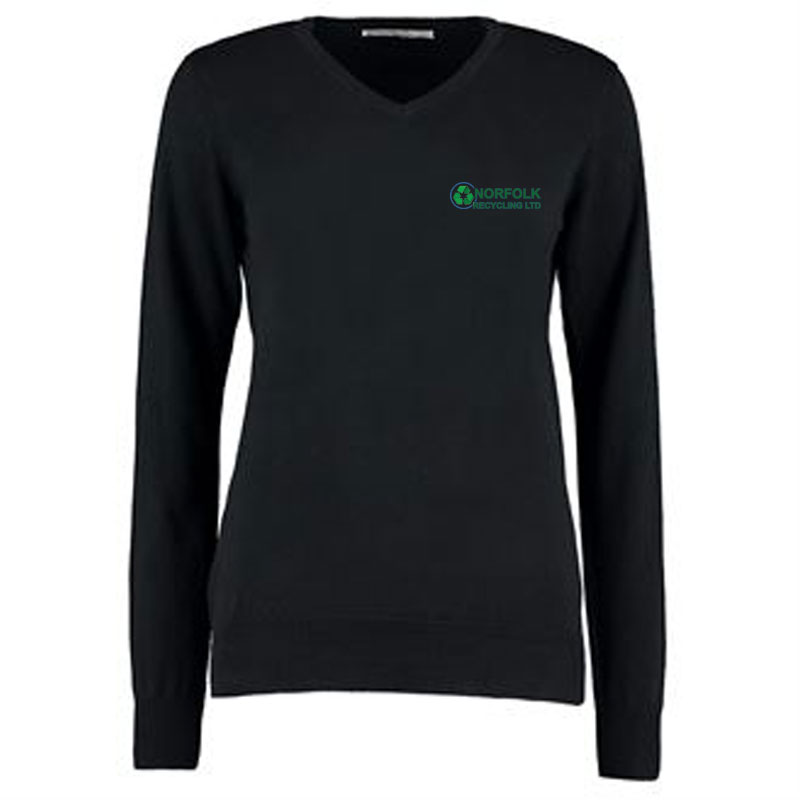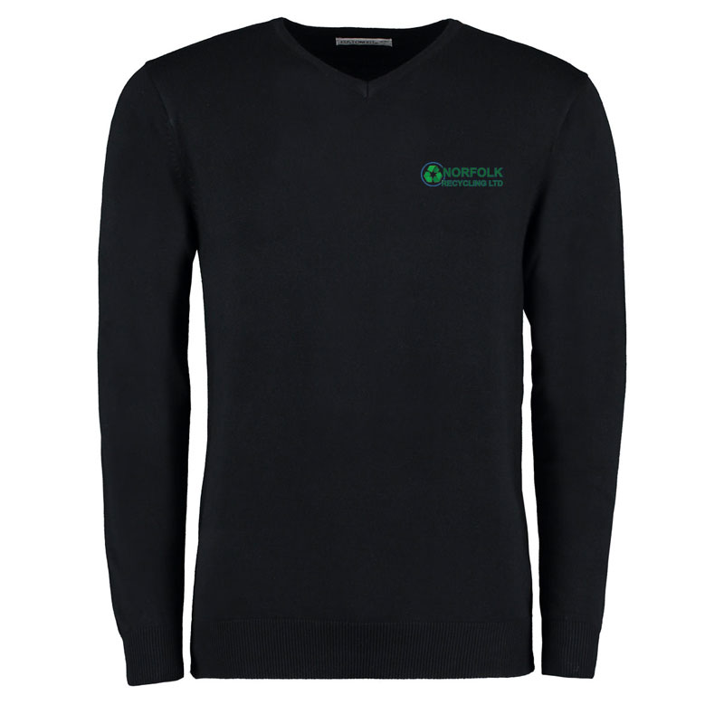 Features 1 x 1 rib cuffs and welt, Fully fashioned armholes and sleevehead, Tubular linked mitred V neck